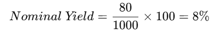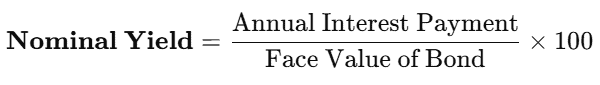 For example, if ABC Ltd. has a credit rating of AAA and issues a bond with a face value of ₹1,000 and pays ₹60 yearly, the nominal yield would be 6% per year.