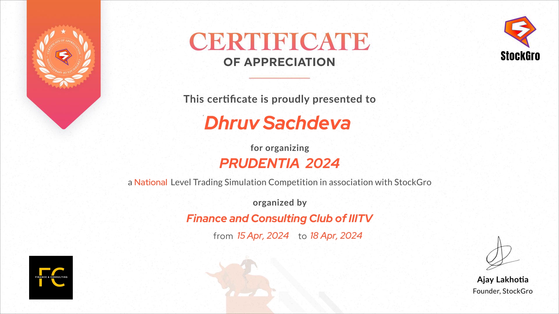 Certificate Receipient: Dhruv Sachdeva