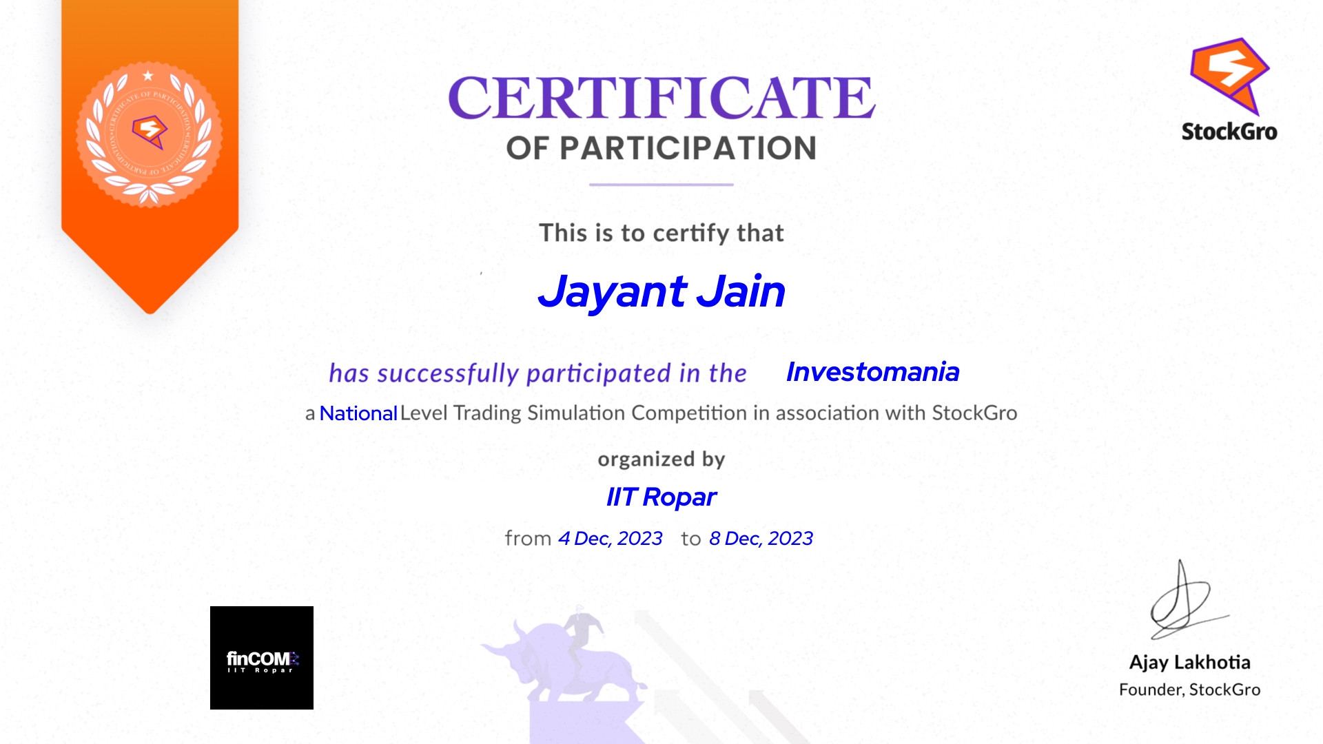 Certificate Receipient: