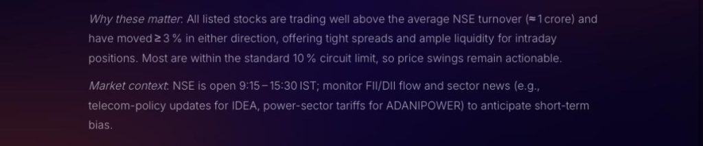 For example, when asked to “Show me stocks that are good for intraday trading today with high volume and price movement,” it gives you a ready list.